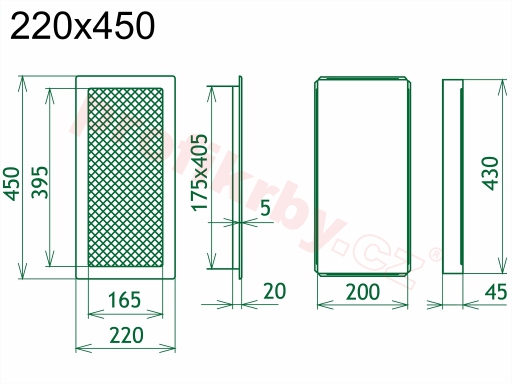 | Rozměr mřížky ( venkovní rozměr rámečku) (mm) | 220x450 mm |