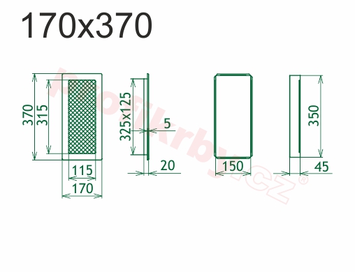 | Rozměr mřížky ( venkovní rozměr rámečku) (mm) | 170x370 mm |