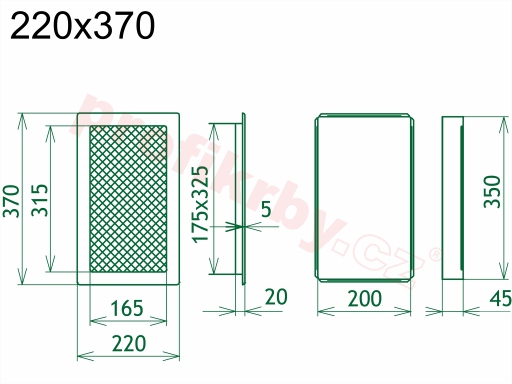 | Rozměr mřížky ( venkovní rozměr rámečku) (mm) | 220x370 mm |