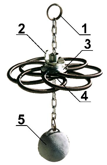 5) Na dolní karabinu připevníme závaží (5).