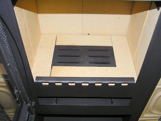 Vnitřní vyzdívka je tvořena rovnými šamotovými deskami, které efektivně udržují teplo a podporují správný spalovací proces. Jsou snadno vyměnitelné a běžně dostupné jako náhradní díly. Jemné praskliny v šamotu jsou pro tento materiál typické a neovlivňují funkci kamen.