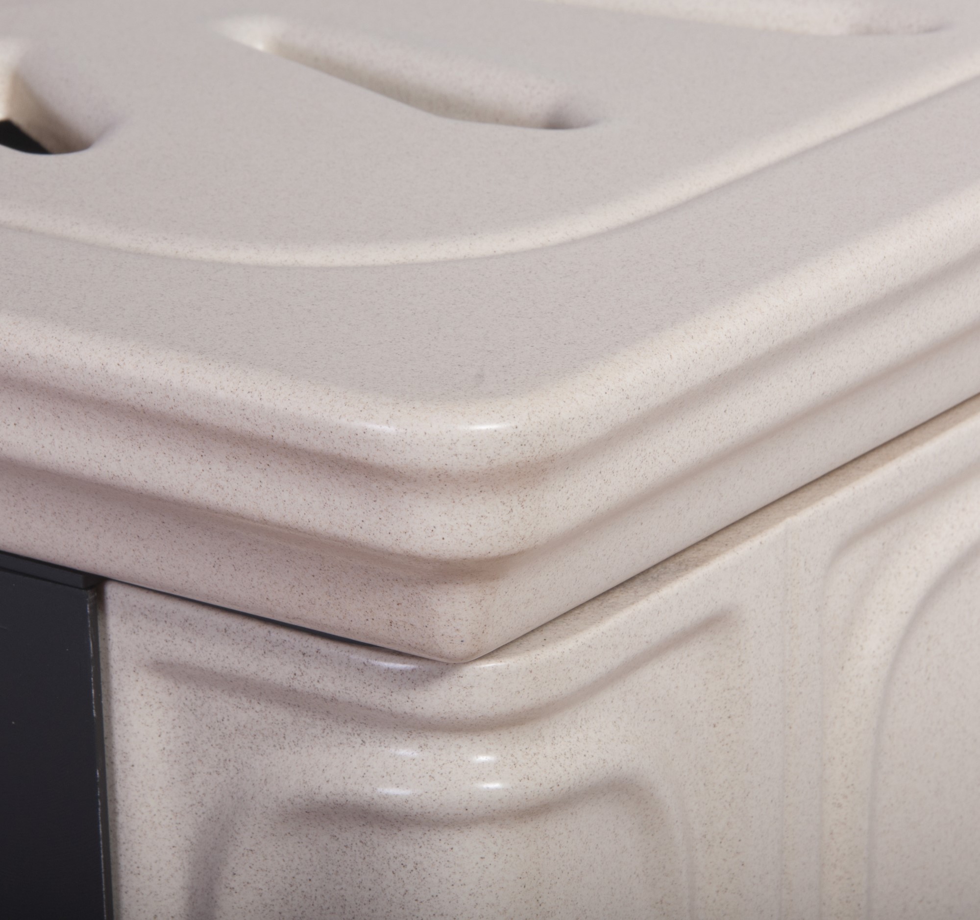 | Druh povrchu | korpus-černý lak, bočnice-bílý smalt, římsa-keramická kachle bílá |