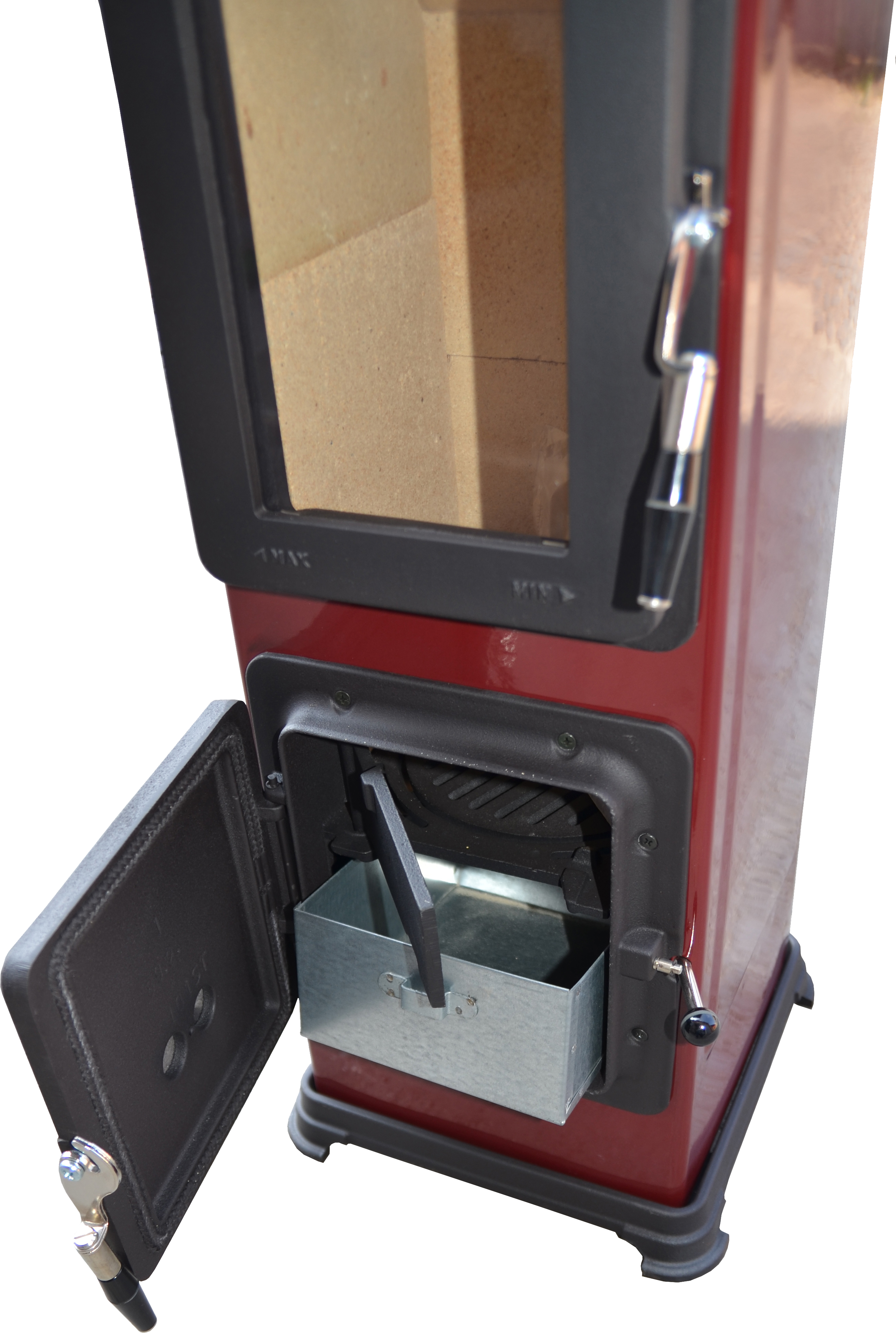 Otvírací páčky kamen jsou tvarové odlitky, zavírání je těsné a bezhlučné. Při čistém dřevě postačí nádoba popelníku zhruba na 4 až 5 dnů topení.