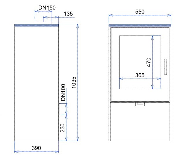 | Bezpečná vzdálenost od hořlavých stavebních konstrukcí a nábytku před dvířky | 800 mm |