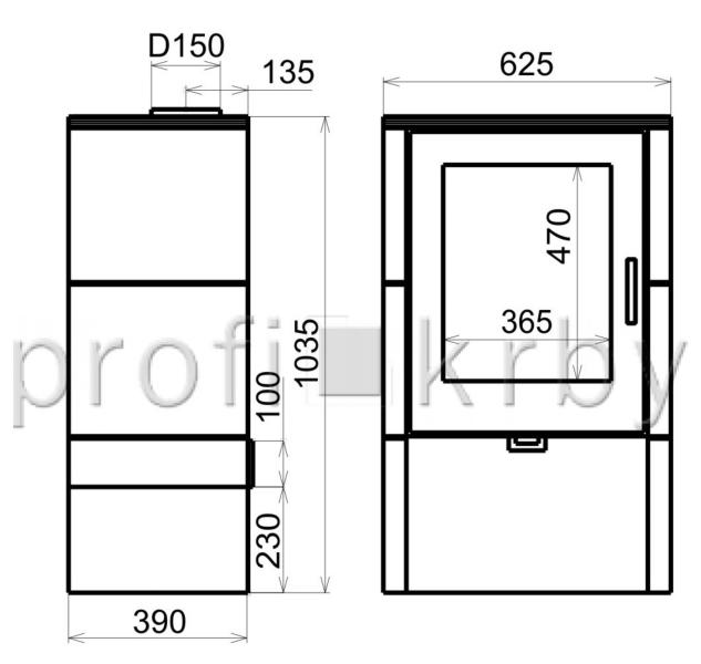Minimální přesah nehořlavé podložky pod kamna vpředu | 500 mm |
