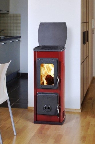 Přikládací a popelníkové dveře jsou z velmi odolné litiny, upravené odolnou barvou proti teplu a otěru.