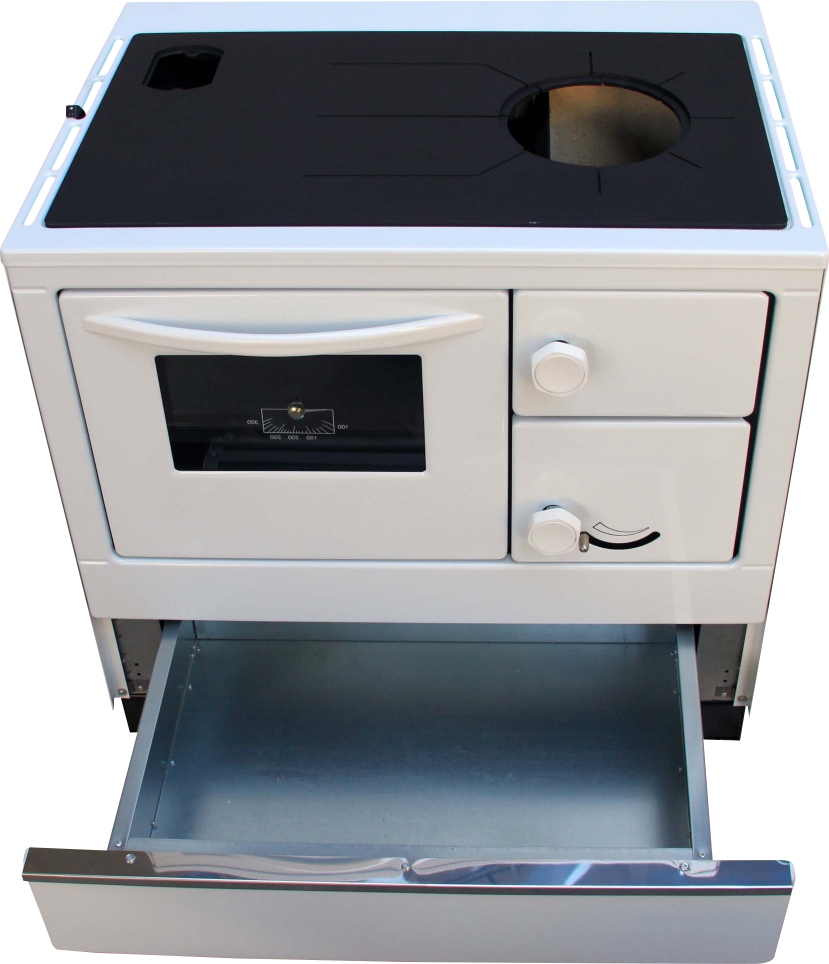 Vedle ohniště je smaltovaná trouba na pečení s dvěma páry nosných žeber na příslušenství. Je uzavíratelná odnímatelnými dvířky, které jsou k obrubě trouby přitlačované ocelovými pružinami. Pod troubou je otvor na čištění spodní části sporáku, který je zakrytý smaltovaným víkem.