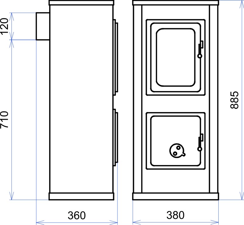 Bezpečná vzdálenost od hořlavých stavebních konstrukcí a nábytku před dvířky | 800 mm |